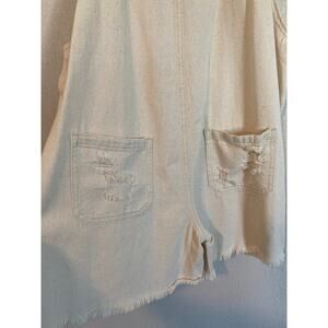 These are stylish women's overalls by POL, featuring a distressed design with front pockets and adjustable straps. Made from 100% cotton, they offer a comfortable and casual look. ***NWT***