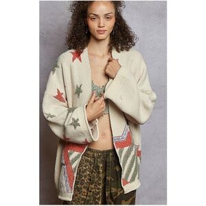 POL Cream Star Print Chenille Open Front Loose Fit Cardigan