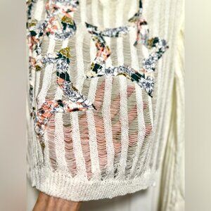 The V-neckline adds a touch of elegance, while the relaxed fit ensures comfort throughout the day. Adorned with vibrant floral accents, it brings a pop of color to any outfit. Ideal for casual outings or cozy nights in, this sweater is a must-have for your wardrobe! Size M