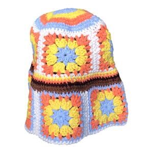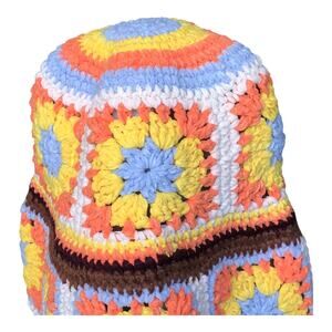 POL Crochet Granny Square Chenille Polyester Bucket Hat One Size