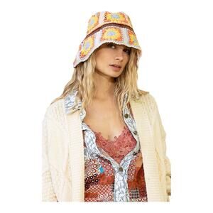 POL Crochet Granny Square Chenille Polyester Bucket Hat One Size NWOT