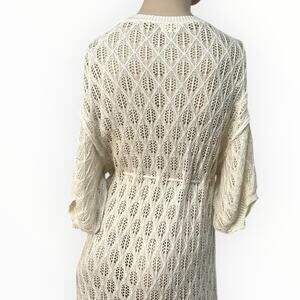 POL Crochet Ivory Beach Cover Up Kimono Cardigan Tassel Tie Waist Size S NWOT