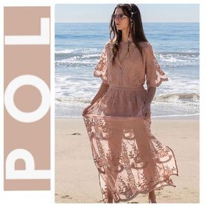 POL Crochet Lace Plunging Neckline Side Slit Romper/Maxi Dress -- S/M