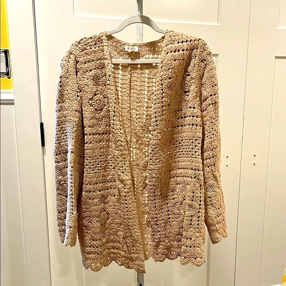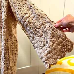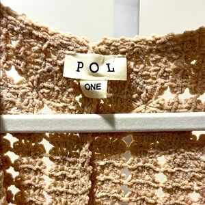 Chic crochet cardigan by POL. Open-front design. Perfect for layering. Adds elegance to any look. Has an almost chenille mix texture. Very soft. PTP 24”; Length 28”