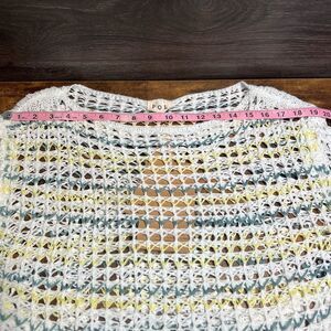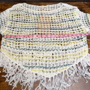 POL Crochet Mesh Knit Boat Neck Top, Fringe, Cream/Yellow/Blue. Small. NWT!