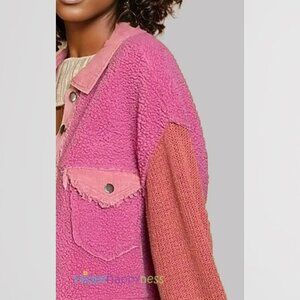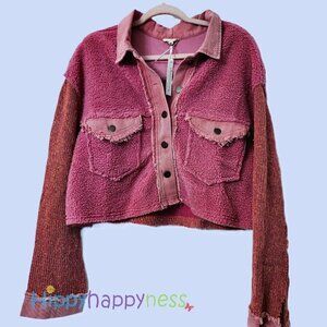 POL Crop Jacket Shacket Barbie Pink Sherpa Size Medium NWT