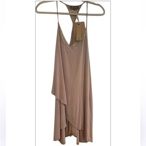 Pretty light mauve butter soft dress with a sexy vintage cream lace. Racer back and adjustable straps. Perfect Layering Dress, or as a Comfortable Nightgown!