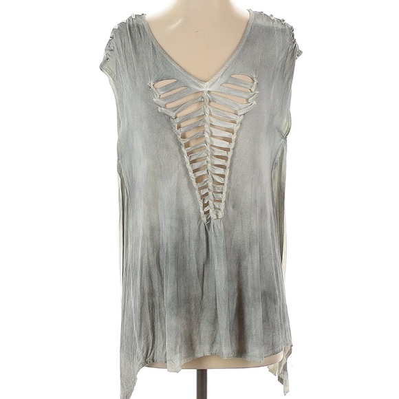 Edgy gray tunic with a striking cut-out front & back. Ideal for a bold fashion statement.
