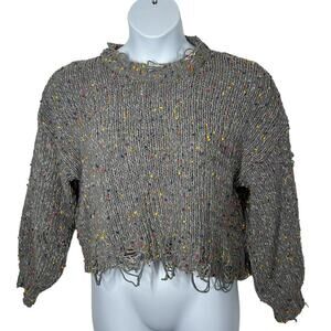 POL Distressed Sweater Small | Gray Ripped Sweater with Rainbow Confetti Detail