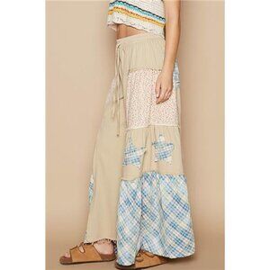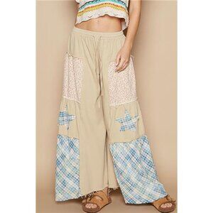 POL Drawstring Star Patch Contrast Wide Leg Pants