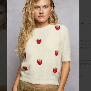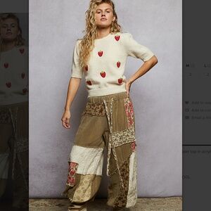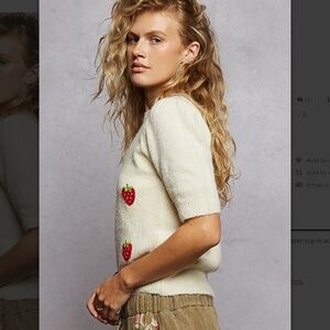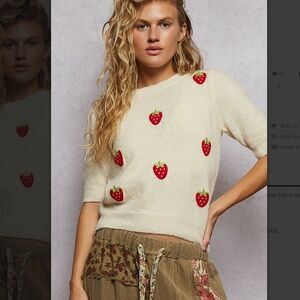 POL “ Edith” POL Short Sleeve Sweater with Handmade Strawberry Patch Detail 44