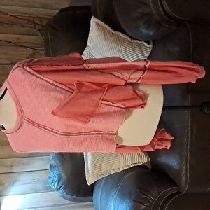 POL Exposed Seam Cropped Long Sleeve Top Oversized Boho Bohemian Knit Sun Fading Pre-owned
