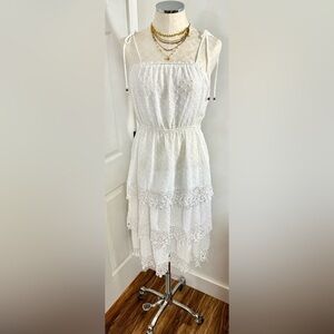 Triple tiered bottom with sunflower shaped appliqué hemline