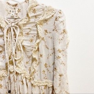 POL Floral Boho Cottagecore Babydoll Embroidered Ruffle Blouse M