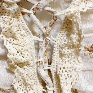 POL cream boho blouse with copper and gold metallic embroidery in excellent condition. Lace detail and ladder tie on the front. Has 3/4 sleeves with elastic cuffs.