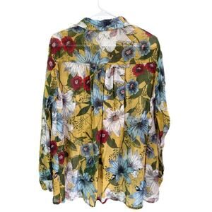 POL Floral Button Down Shirt Yellow Multicolor Oversized Blouse Size L