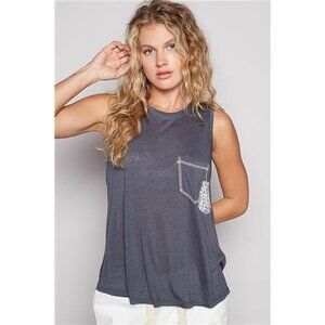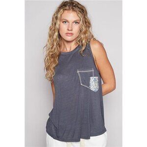 POL Floral Detail Pocket Patch Tank Top