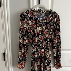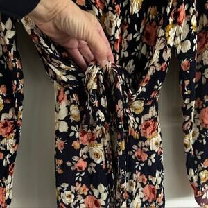 POL Floral Long Sleeve Tie-Back Ruffle Fall Dress Navy Small