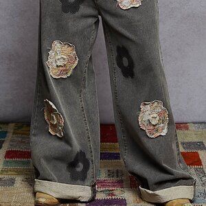 #POL #Boutique #PatchworkJeans #FloralDenim #RelaxedFit #WideLeg #BoyfriendJeans #VintageWash #RolledHem #BohoStyle #Streetwear #Cottagecore #FestivalOutfit #BlackDenim #NWT
