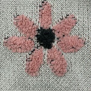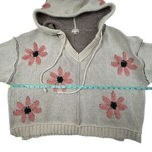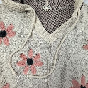POL Floral Pattern Hooded Cropped Sweater Women Small Pink Cream Boxy