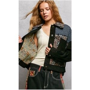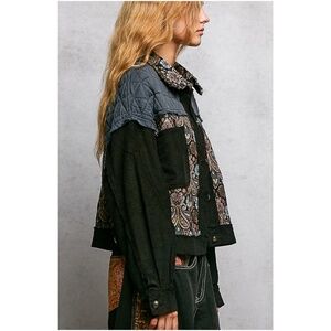 POL Floral Print Quilted Corduroy Button Down Loose Fit Jacket Coat
