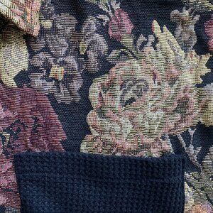 Tapestry fabric for the primary shacket part, waffle fabric for the arms and front chest pockets