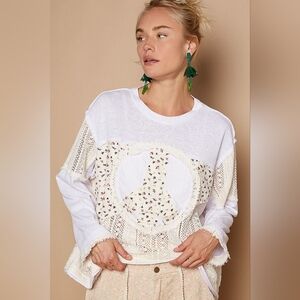 POL Floral White and Cream Crochet Top, Peace Sign, Sz SM, Oversized, NWT