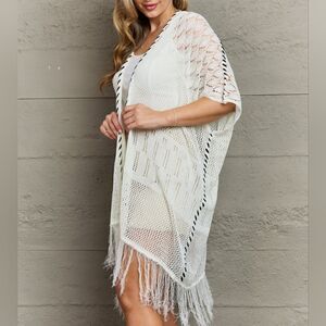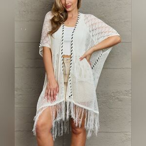 POL Fringe Sheer Open Long Cardigan Kimono sz L