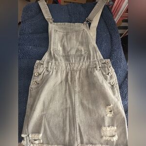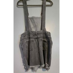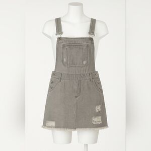 POL Gray Distressed Denim Overall Skirt Jumper Dress Small Frayed Hem Casual
