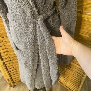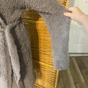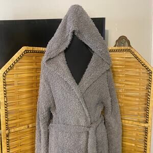 POL Gray Hooded Teddy Fleece Robe Cardigan Longline with Belt Medium