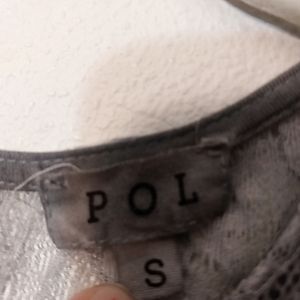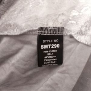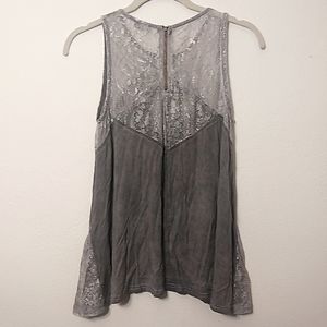 Gray tank top with a lace high neck. Lace cut outs on the side. Zipper on the back.