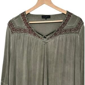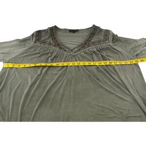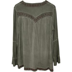 POL Gray/Green Embroidered Long Sleeve Oversized Tunic Top (M)