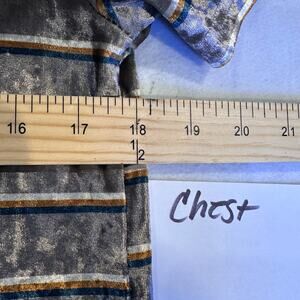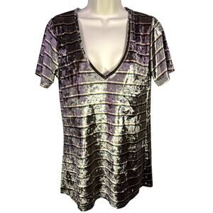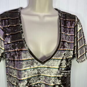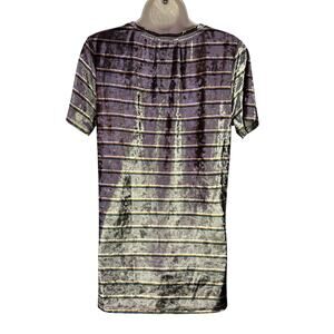 POL Green Striped Velvet Short Sleeve V-Neck Retro Pocket Tee Size Small