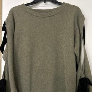 POL Green With Velvet Bows Embroidered Floral Quirky Unique Sweatshirt Large