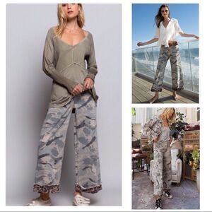 We love our "Never Before Seen CAM-LEO" pants for its unique look with mixtures offabric put together. Designed in a relaxed fit with button and zipper closure on the front, belt loop, 4 pockets, distressed detailing on the bottom with finished contrast leopard fabrication on folded band