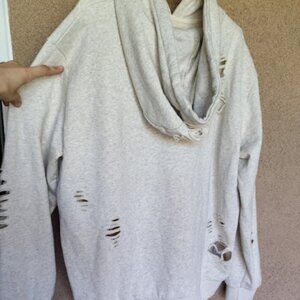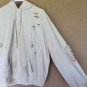 POL Heather Grey Oversized Slashed Distressed French Terry Hoodie Sweatshirt L