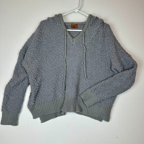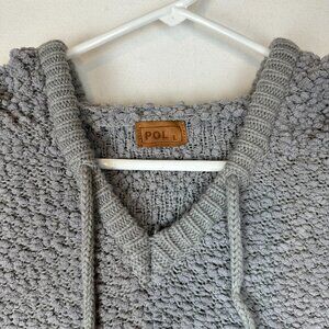 V neck Knit Sweater Trim on Hood, Cuff and Waistband