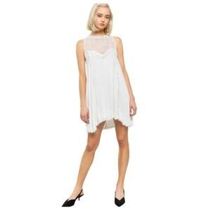 POL Ivory Boho Mesh Crochet Lace Trim Hi-Low Mini Dress Romantic Chic Small