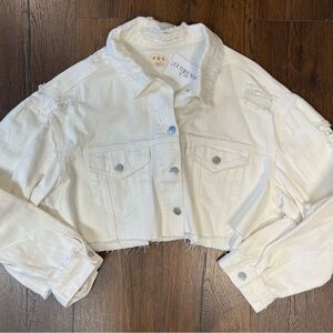 🆕 POL Ivory Cropped Distressed Raw Edge Front Pockets Denim Jacket SZ LG