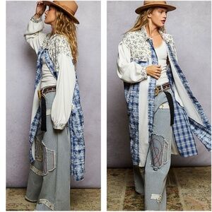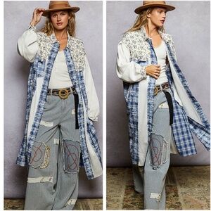 POL Ivory Plaid Floral Print Button Down Long Sleeve Jacket Shacket