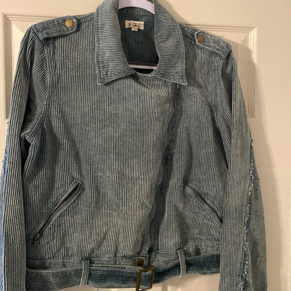 Greenish corduroy jacket. Very soft and stylish! Pretty much brand new! Maybe worn once. Bought on online boutique