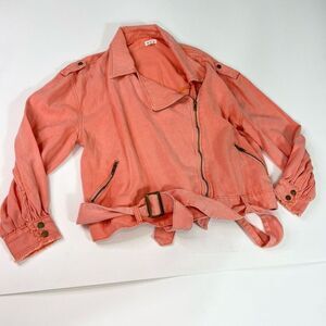 POL Jacket Womens Medium Orange Cotton Long-Sleeve Full-Zip Belted oversized