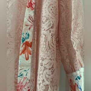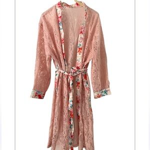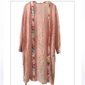 In a beautiful Pink rose with Satin Floral Trim! Many uses! Duster/coverup/Robe! Oversized will fit up to an 1X