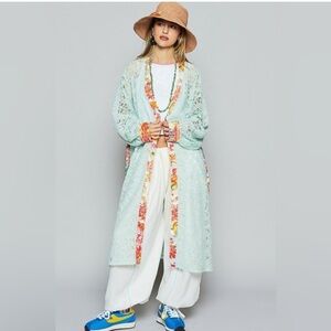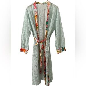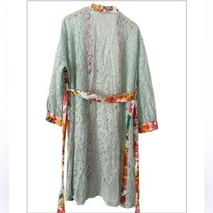 In a beautiful Mint green with Satin Floral Trim! Many uses! Duster/coverup/Robe! Oversized will fit up to an 1X