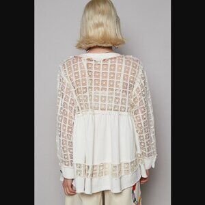 POL Lace Patch Button Down Jacket Top Off White NEW