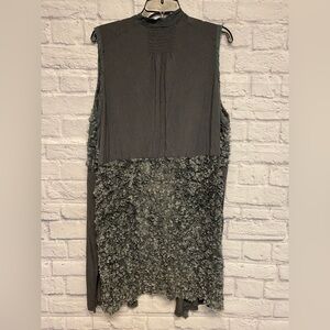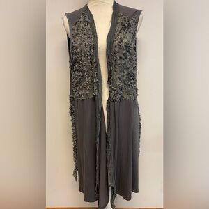 Very good condition! Boho Bohemian Shabby Chic Lace Paneled Sleeveless Kimono Open Cardigan in Gray