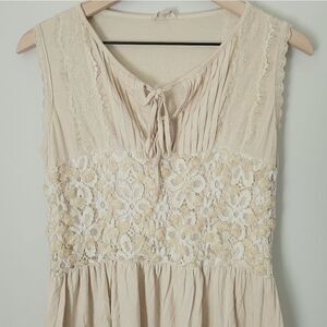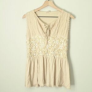 POL Lace Trim Peplum Tank in Nude Size Small