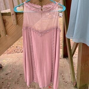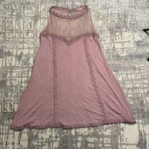 POL Midi Mini Dress in a rosy pink with lacey halter top neckline. Rosette embroidery lace design throughout and a sweetheart design across the bust. Great preowned condition. Size S.