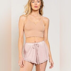 POL Light Weight Ruffle Trim Shorts In Light Baby Pink Size Large NWOT