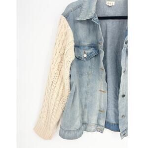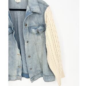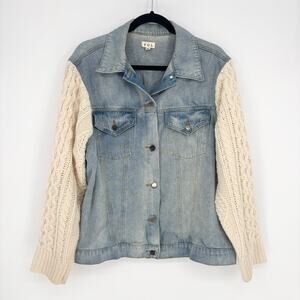 POL Lightwash Denim Cream Crochet Knit Sleeve Jacket Size XL